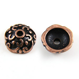 Bead Cap, Pewter 8mm Filigree in Antique Copper Finish
