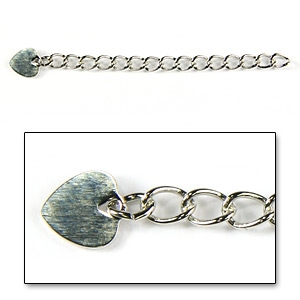 Extender Chain, 50mm Necklace Extender Chainwith 6mm Flat Heart (each link 3x5mm) – Nickel Colour, Nickel Free