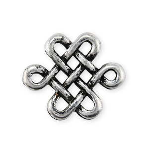 Skip to contentChinese knot in an antique silver finish. Great to use on a bracelet, necklace or as a pair of earrings or even just on a keychain. This pewter is lead free.