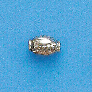 Handcrafted .925 Bali silver bead. Long, hexagonal bicone with thin silver bands around each bead hole and softly carved facets. Simple and attractive, this bead makes an excellent accent or focal bead. A modern cut and flawless shine really make this bead versatile and valuable. Beads and their hole sizes may vary as they are handmade.