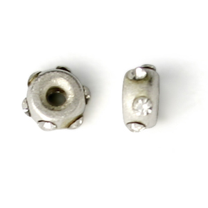 Bead, Sterling Silver 4mm Rondelle in Satin Finish with 6 Clear Crystal (Hole Size 1mm)