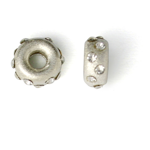 Bead, Sterling Silver 6mm Rondelle in Satin Finish with 12 Clear Crystals (Hole Size 2mm)