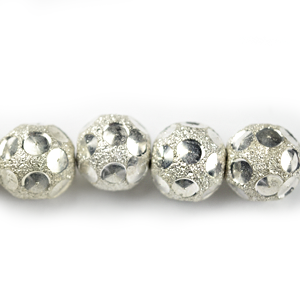 Bead, 8mm Round Satin Silver Bead with Sparkles, holesize: 1.2mm – Silver Plated Brass Seamless