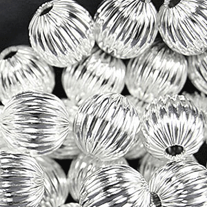 Bead, 6mm Corrugated Round Seamless bead, holezie: 0.75mm – Silver Plated Brass