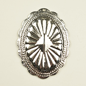 Concho, Pewter 37.5×27.5mm Oval with Intricate pattern and hole at Top End – Silver Plated