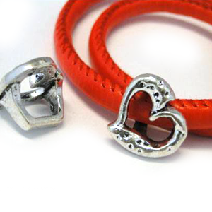 Bead, Slider 19.x18mm Heart Design in Silver (Inner Slider size: 10x7mm)
