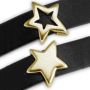 Bead, Slider 14.1×13.2mm Star Design for Flat Leather or Cord (Hole Size: 10×2.5mm) – Antique Brass