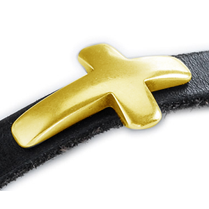 Make this cross slider stand out on your bracelet. It is really special, unique and combines with any beads on color leather. Use one flat leather 10mm or two strips of 5mm flat leather to have it stand out.