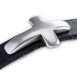 Make this cross slider stand out on your bracelet. It is really special, unique and combines with any beads on color leather. Use one flat leather 10mm or two strips of 5mm flat leather to have it stand out.