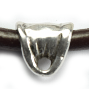 Slider bead pulled in at bottom to form a texture. This slider bead adds elegance to your bolo cord necklace design. Bolo cord will show off this bead with loop so you can put jump ring to add your favorite pendant or a charm.