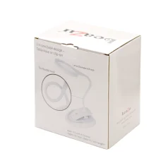 Hands-free design with a stable desktop stand or optional clip for attaching to surfaces