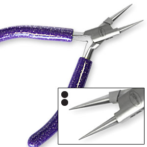 Made of stainless steel with a box joint, these pliers feature cushion P.V.C sparkle grips and a double leaf spring. The perfectly rounded jaws have finely tapered tips for making loops and coils.
