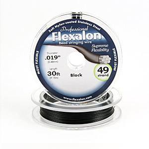 Flexalon is a nylon coated, flexible, stainless steel, bead stringing material. This black coated 49 strand wire offers the highest quality and is the professionals choice. The superior drape and flexibility of 49 strand wire virtually eliminates coiling or kinking.