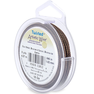 Artistic Wire, Twisted Round, 18 Gauge – Antique Brass (5 yards per spool)