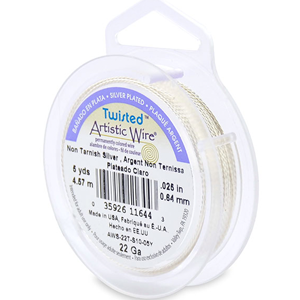 Artistic Wire, Twisted Round, 22 Gauge – Tarnish Resistant / Non-Tarnish Silver (5 yards per spool)